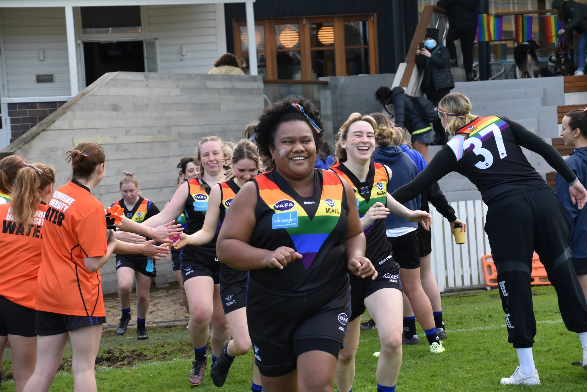 Melbourne University Women’s Football Club (MUWFC) has a proud history and culture of LGBTIQ+ inclusion and celebrates the diversity of our players, coaches, volunteers and members both past and present.